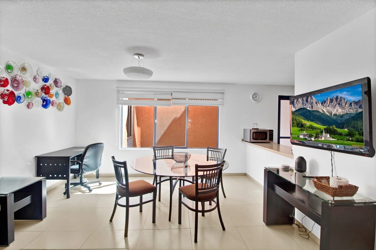 Muy buena ubicación, el fraccionamiento es súper tranquilo, aunque está muy cerca de avenidas adentro es muy silencioso. Tuvimos un problemita con el boiler pero lo resolvieron pronto. Muy buena comunicación con el anfitrión y su equipo. Me gustó que hicieran limpieza en la semana, muy buena atención también de parte de la persona que hacía la limpieza. Estuvimos 10 días y nos cambiaron las sábanas y toallas. 100% recomendable. Sin duda regreso.