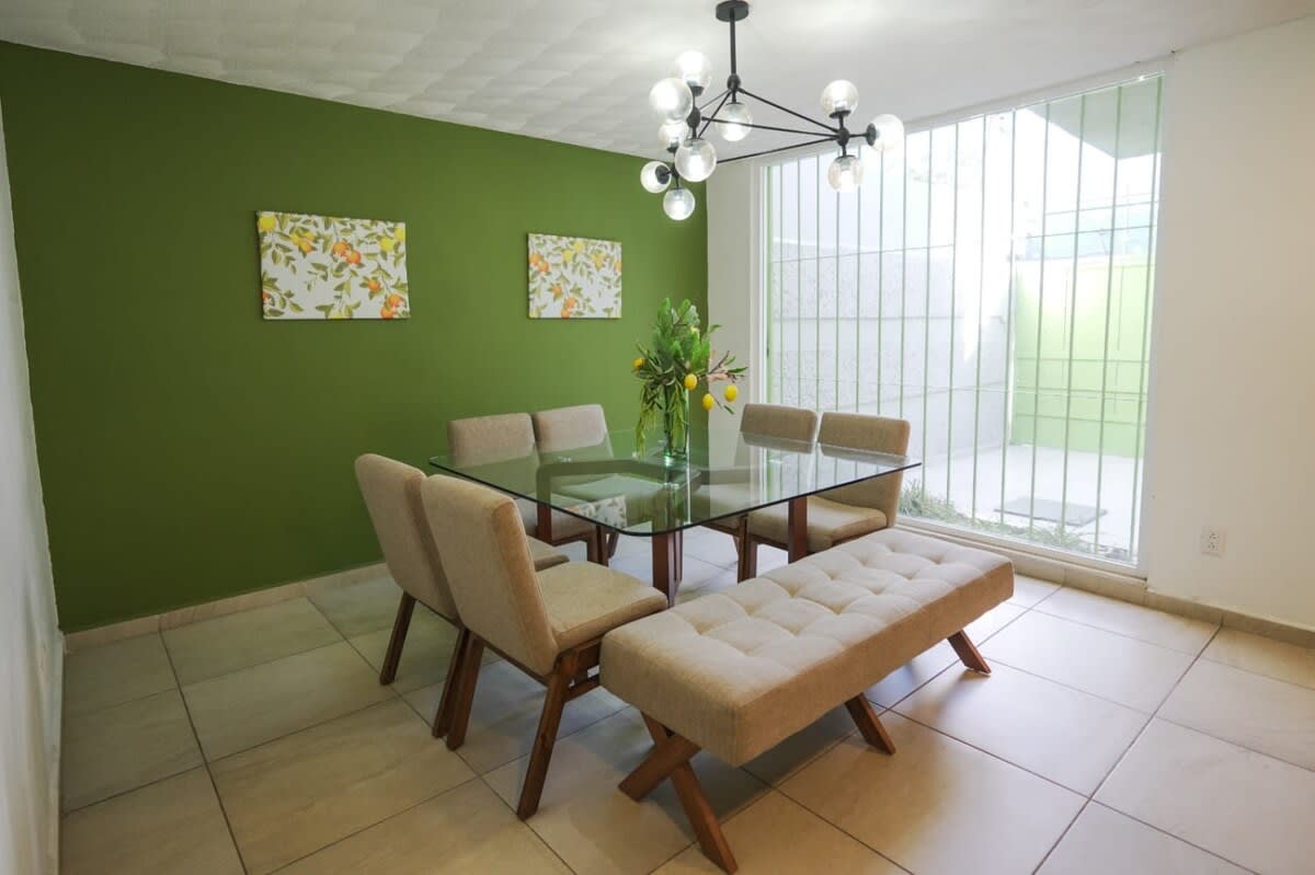 La casa se encuentra en excelente ubicación, es una zona residencial muy tranquila. La atención que recibí desde el momento de la reservacion y durante nuestra estancia fue muy satisfactoria. Los inconvenientes que tuve me los solucionaron de inmediato. En general es una casa que vale mucho la pena para pasar una estancia agradable en Querétaro. Solo recomendaría comentar que el estacionamiento es para un carro tipo sedan porque una suv compacta queda muy justa. Lo más importante, recomendaría instalar cinta antiderrapante en las escaleras al término de cada escalón porque son resbalosas, y 2 personas nos caímos. Pero en general es una excelente estancia. Gracias por su hospitalidad.