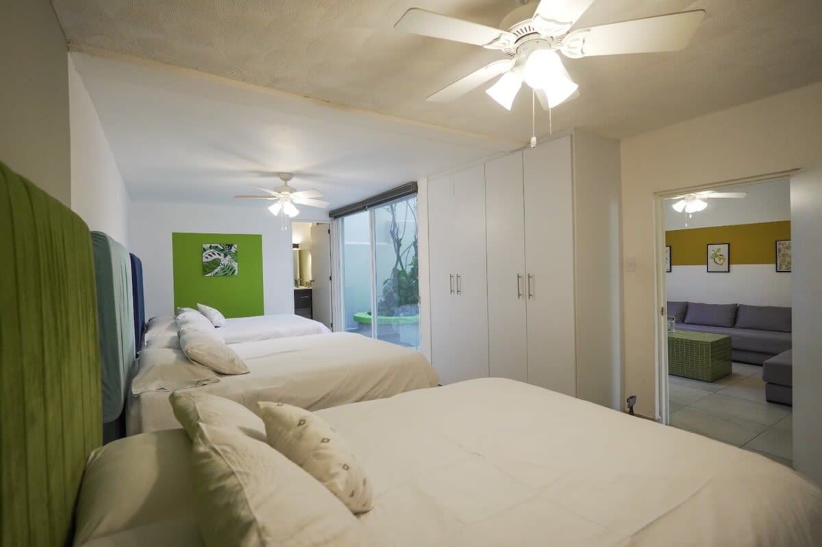 Habitaciones auper funcionales, camas cómodas, agua caliente 24/7, cocina totalmente equipada; privacidad para cada familia y espacios adecuados. La pasamos excelente! y Alejandro de anfitrión siempre al pendiente.