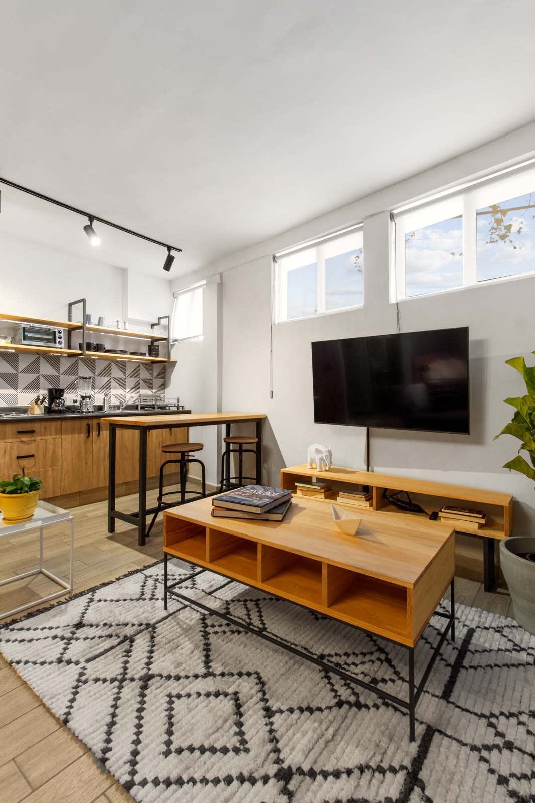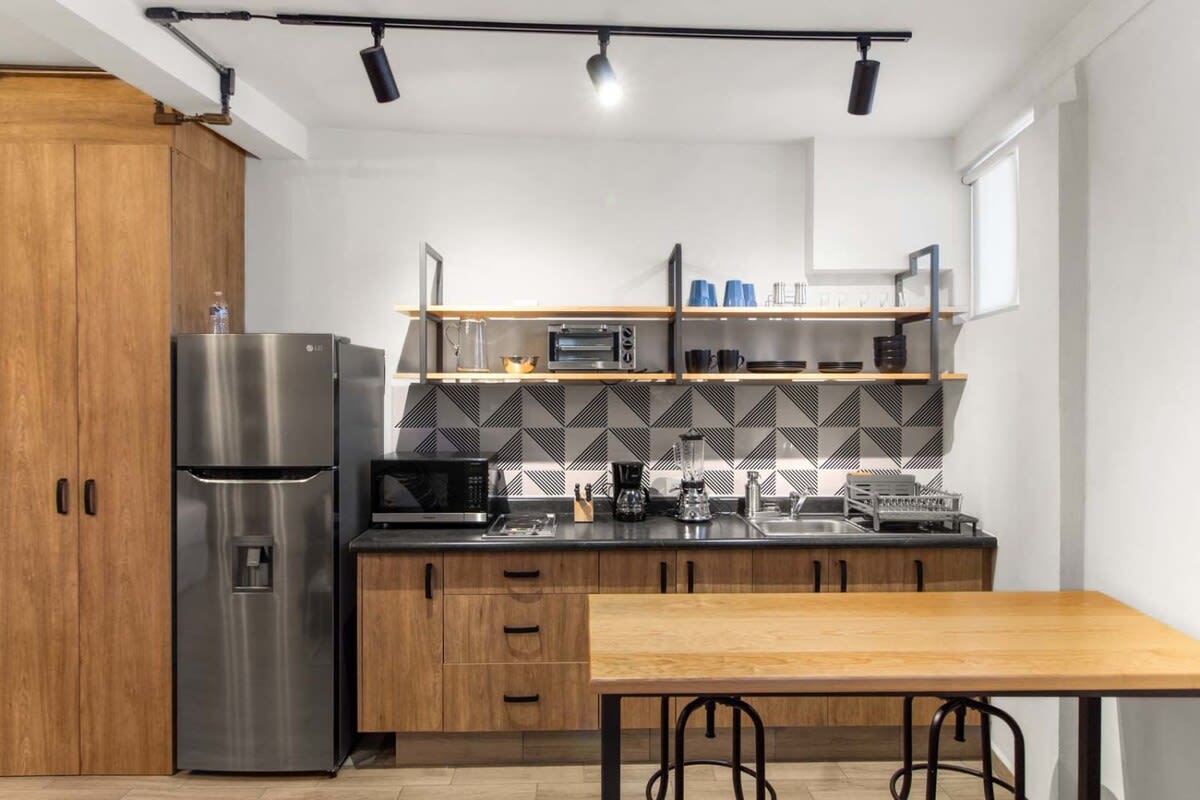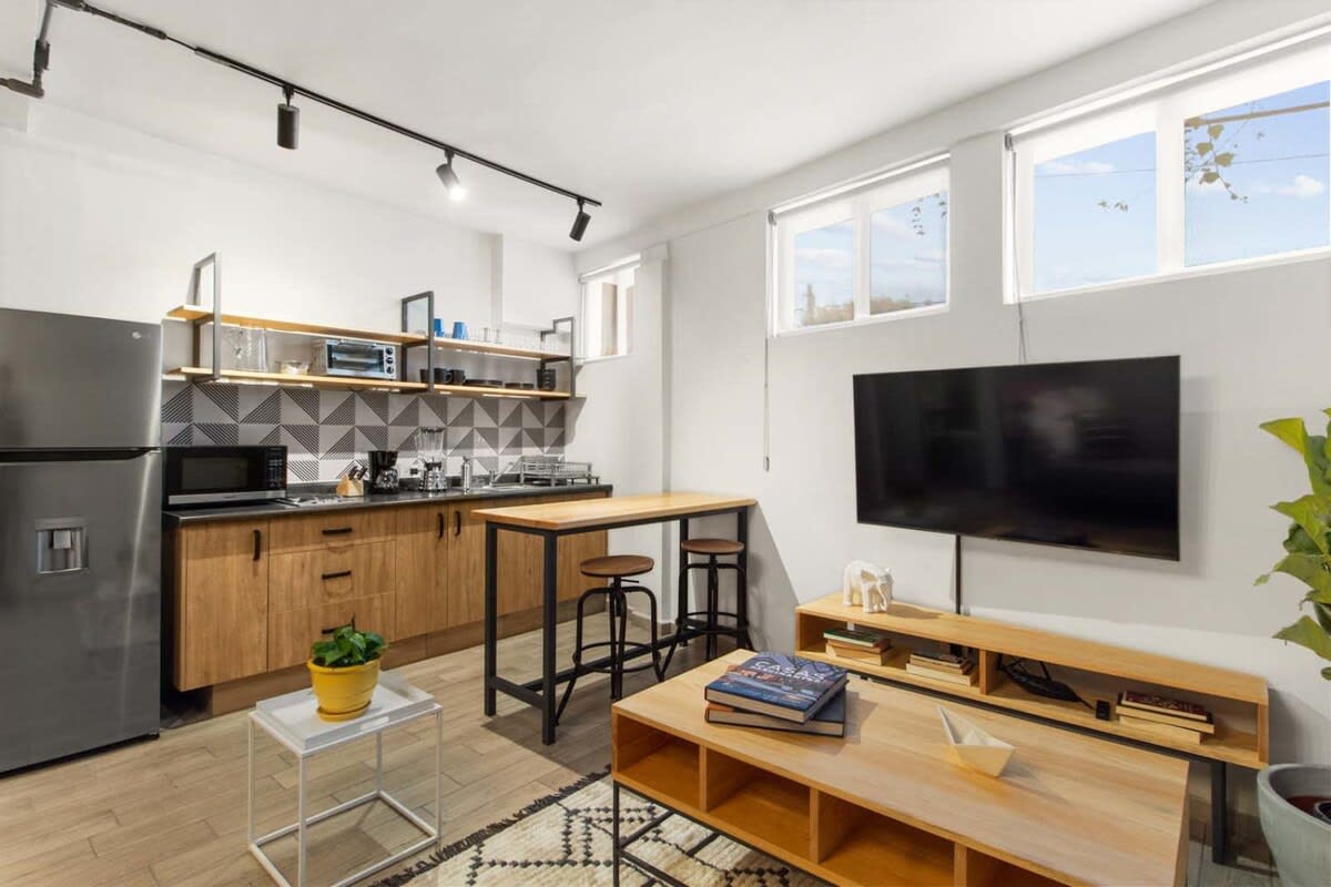 El departamento es muy bonito y la zona aún conserva el encanto de un viejo barrio. Todo es como se describe, además la cocina está muy completa para estancias largas. Lo único a considerar es que está sobre la calle y puede ser muy ruidoso en ciertos horarios, sin embargo, yo puede trabajar sin problemas.- Anonymous , Al corriente: 4/3/2023