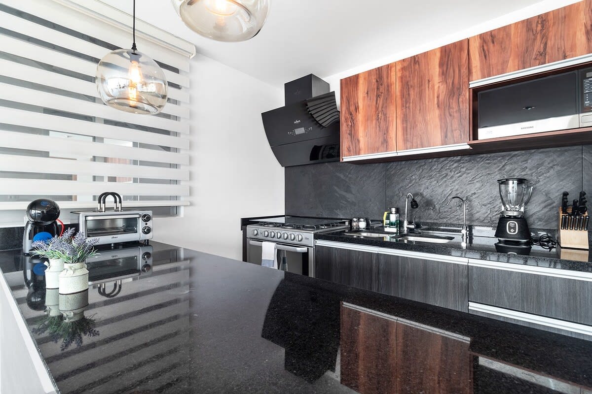 El llegar fue sencillo, la zona es muy tranquila, a unas cuadras hay una farmacia Guadalajara. El depa está hermoso! la vista que tiene es muy linda. La cama está muy cómoda y la cobija extra es super calientita. El agua de la regadera calientita, la cocina super equipada, el internet está súper bien! nos sirvió muchísimo para el trabajo de mi esposo. Incluso, nos permitieron acudir a sus oficinas al momento del check-out para que mi esposo terminará sus horas de trabajo. La verdad que linda atención, desde el perdonal que te escribe por la aplicación hasta la señora de la limpieza. Super recomendado! Viviría aquí sin problema! 🥰