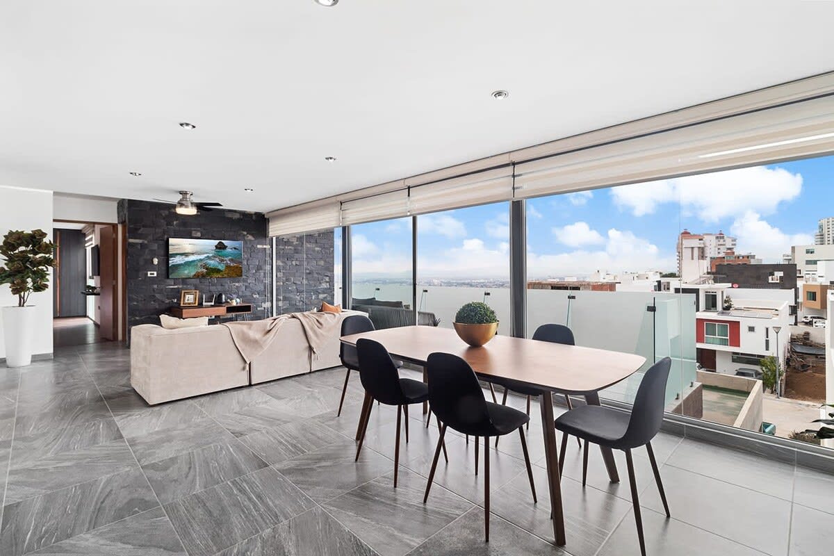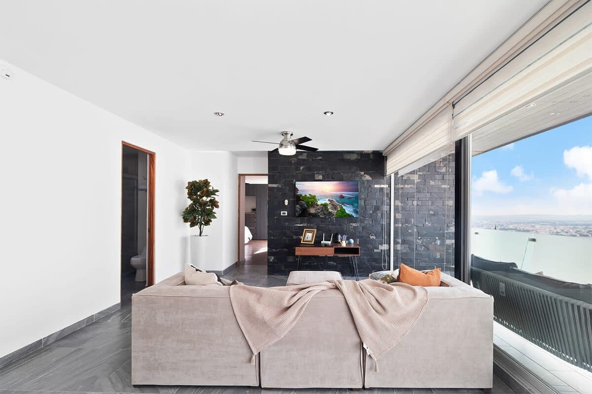 El depa está tal cual el anuncio. Muy bonito, limpio y bien cuidado. Tiene una vista espectacular. Las camas muy cómodas, amamos las almohadas. Tiene todo lo necesario. Lo mejor es que es pet friendly. El fraccionamiento es muy tranquilo y seguro; no hay ruido y permite el descanso. Fácil de llegar y moverse hacia cualquier sitio. En la zona hay restaurantes, un súper y varias tiendas. Muy buena atención de los anfitriones, siempre estuvieron pendientes de nosotros. La pasamos muy bien, nos sentimos como en casa y sin duda regresaremos.