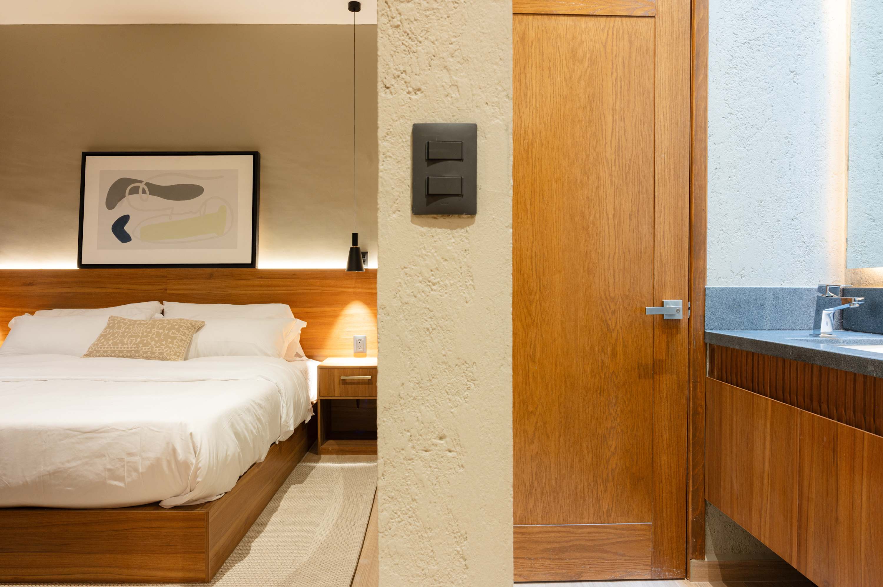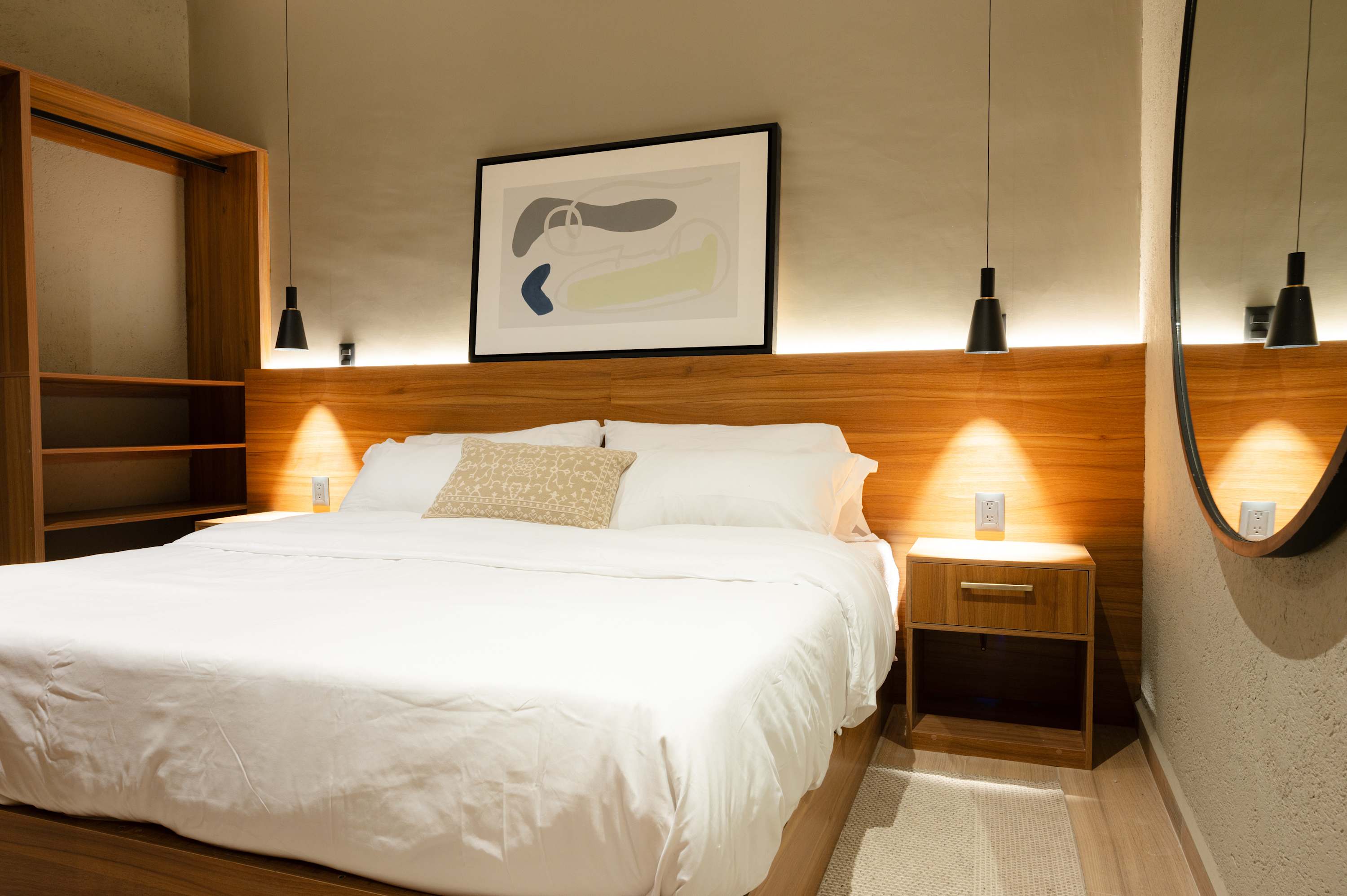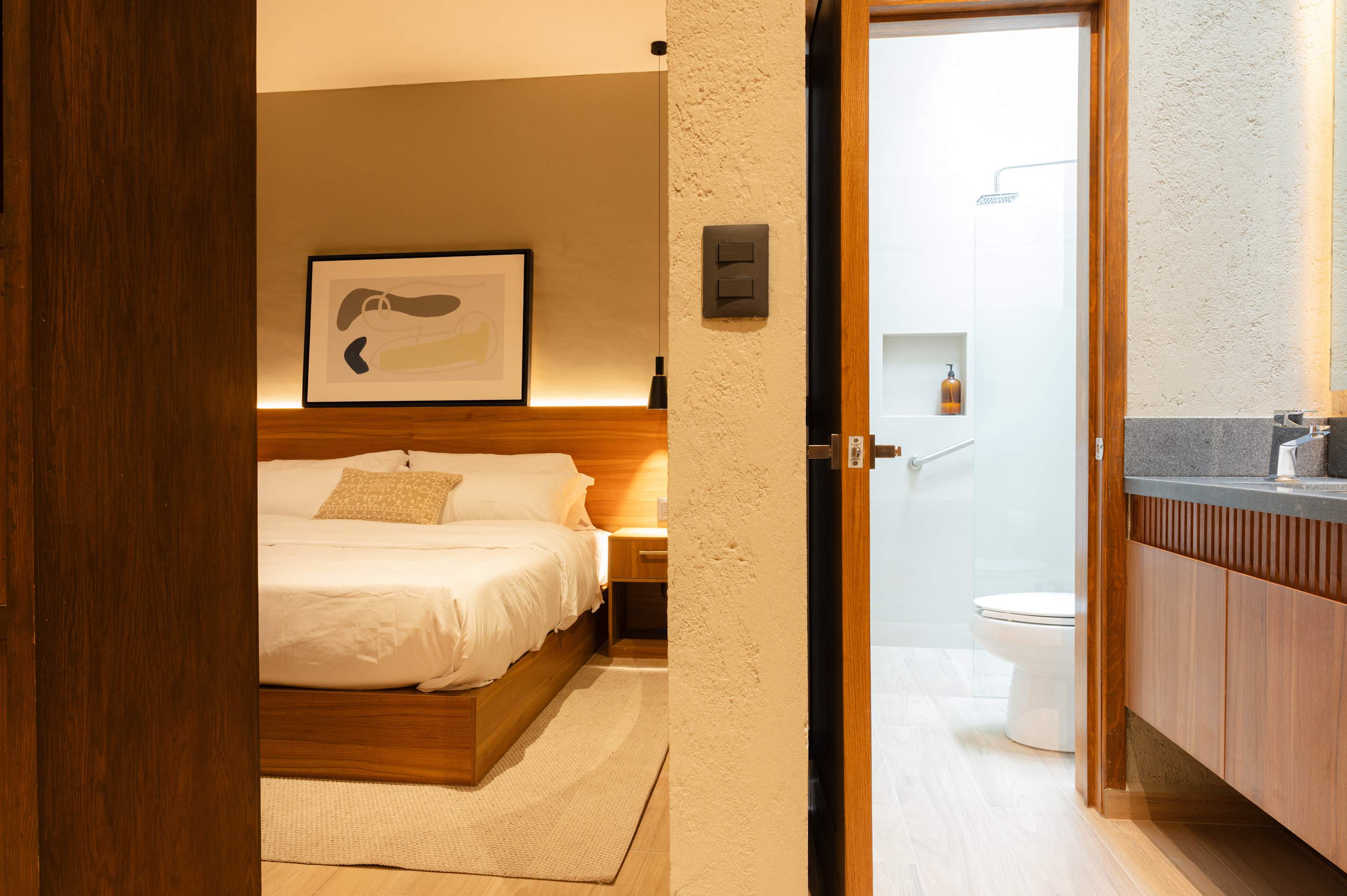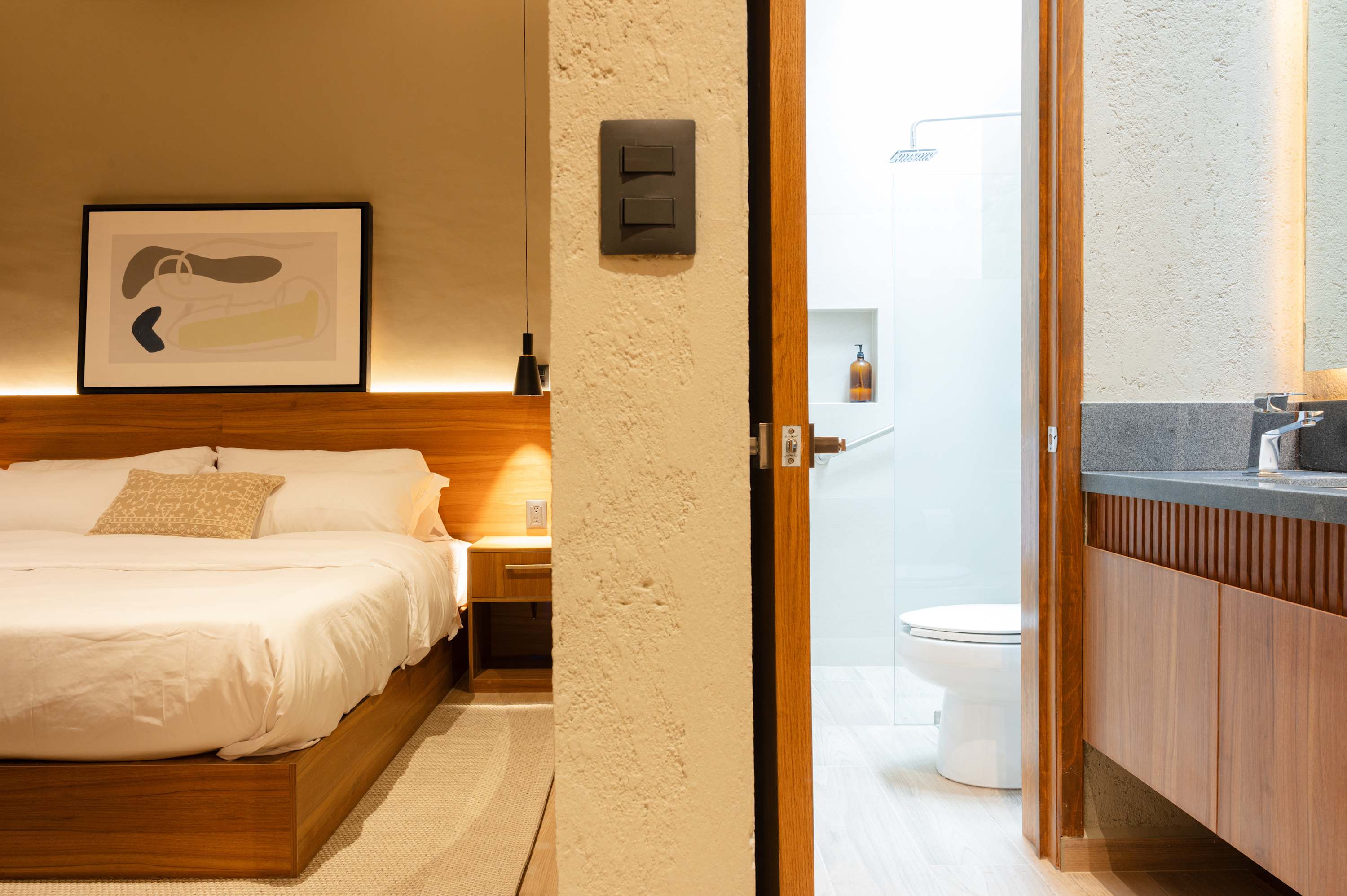 Beautifully designed and well thought out space. The lighting in the unit was amazing. The bed and bedding were very comfortable. Water pressure great. Shower and toilet works really well. We were beyond pleased with the unit, the location. It was peaceful and we had an amazing stay.