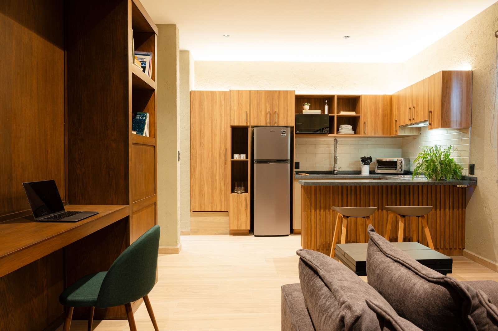 Un departamento muy acogedor, muy buen diseño y sobre todo muy limpio. Parece que estaba recién remodelado así que nos tocó como nuevo. Todos los servicios muy bien y el anfitrión muy atento a cualquier necesidad. Una estancia muy placentera! Definitivamente está para volver!