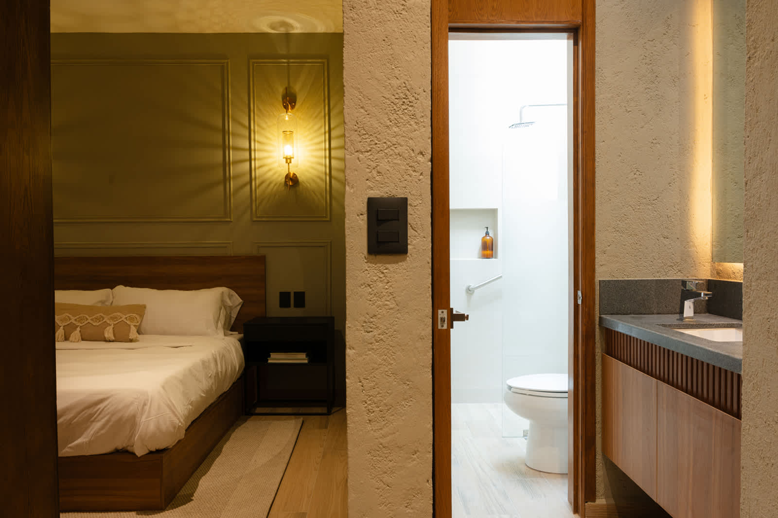 Nos gustó muchísimo hospedarnos aquí. La cama estaba muy cómoda y las almohadas también, descansamos súper bien. El espacio es perfecto para dos personas, amplio y cómodo.