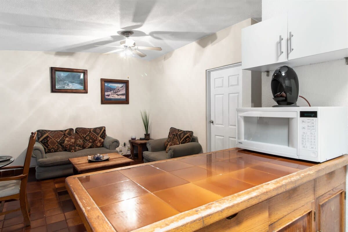 Lo no tan bueno fue que el alojamiento incluía varias amenidades con las que no contaba, el microondas no pudimos utilizarlo, ningún botón respondía, no había secadora de cabello, cuando vi en la publicación que tenía secadora, me agradó porque así evitas llevar una; pues no había. Decía que tenía shampoo y papel higiénico, y solo nos proporcionaron cuatro botecillos pequeños de shampoo y tres rollos de papel higiénico, para los cuatro adultos que estuvimos nueve días.