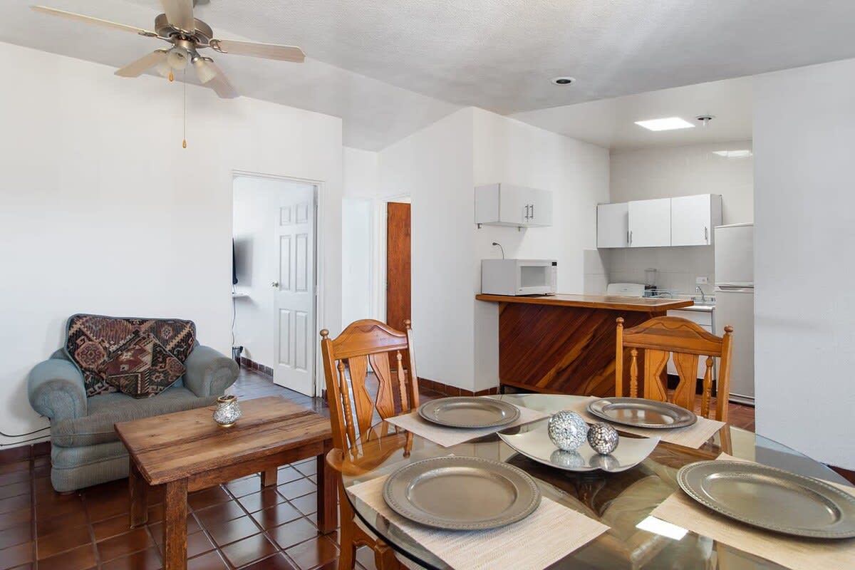 Se trata de un apartamento cómodo y limpio, tuvimos inconvenientes con algunas descripciones e instrucciones para el check-in, a pesar de que el parqueadero tiene el número del apartamento no se nos indico que la puerta del garaje misma que da a la calle no tiene una cerradura con llave o candado para más seguridad así que tuve que conseguir uno por mi cuenta a pesar de expresar mi duda al agente de Mas Suites, posteriormente en la puerta principal para entrar al edificio tuve problemas con la cerradura misma que no se abria hasta después de varios intentos, además una vez ya en el departamento, este contaba con tres cerraduras, solo una de ellas funcionaba, al comunicarme con los encargados me supieron indicar que mantenimiento las revisaría pero el horario simplemente no fue de mi conveniencia ya que salia todos los días muy temprano, se debería incluir instrucciones detalladas de como usar el boiler o termostato antes de la llegada al departamento ya que fue algo dificil descubrirlo