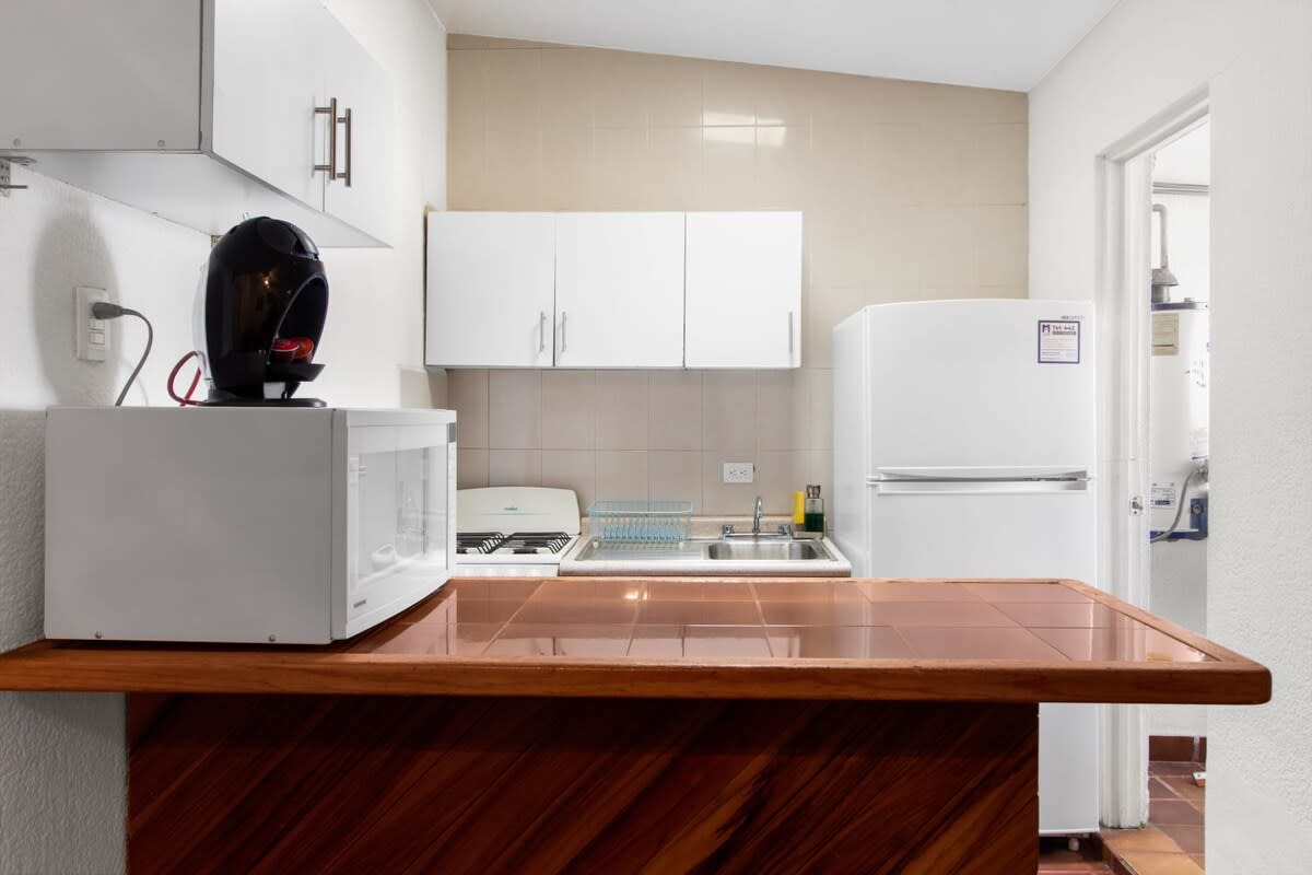 El alojamiento es tal cual en las fotos, verdaderamente me sentí como en casa. Tiene lo básico como estufa, microondas, refri, internet, platos, vasos, toallas.