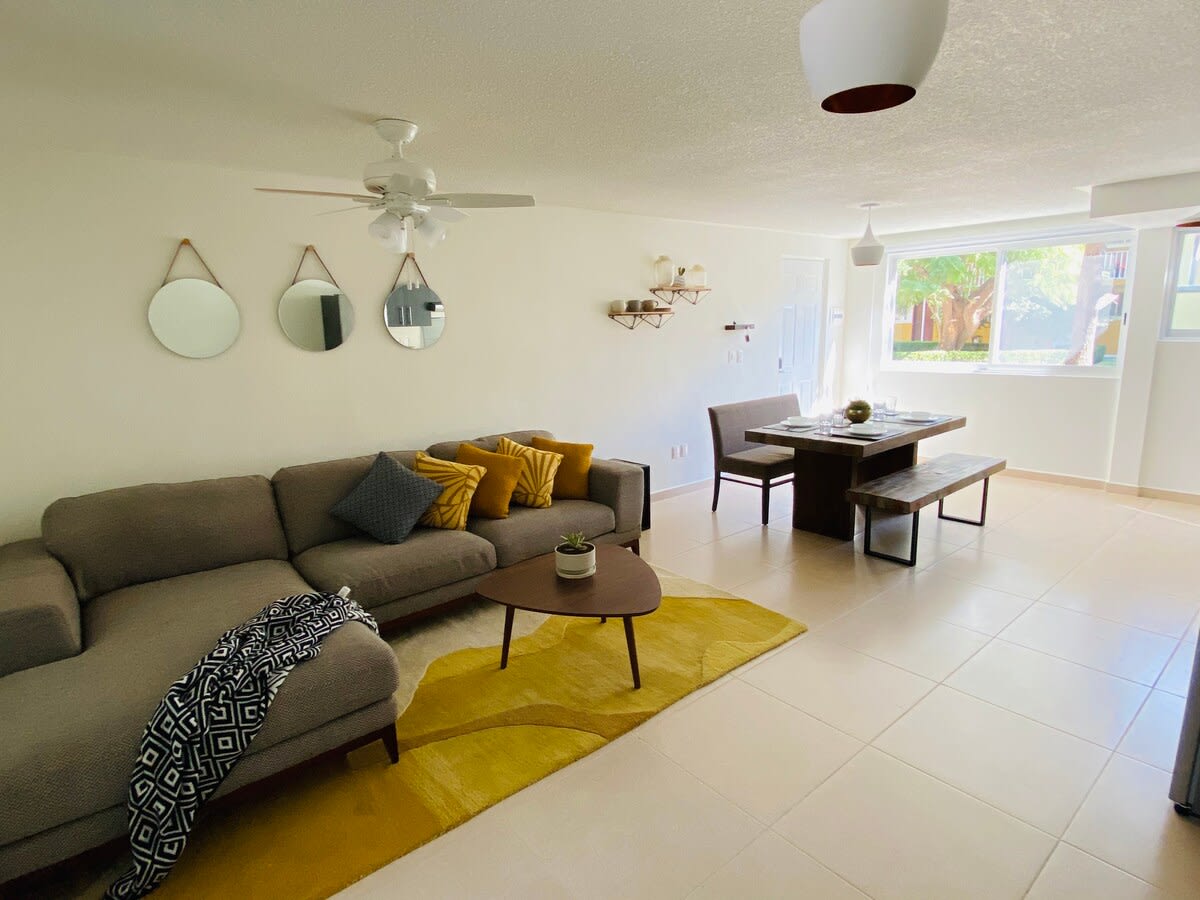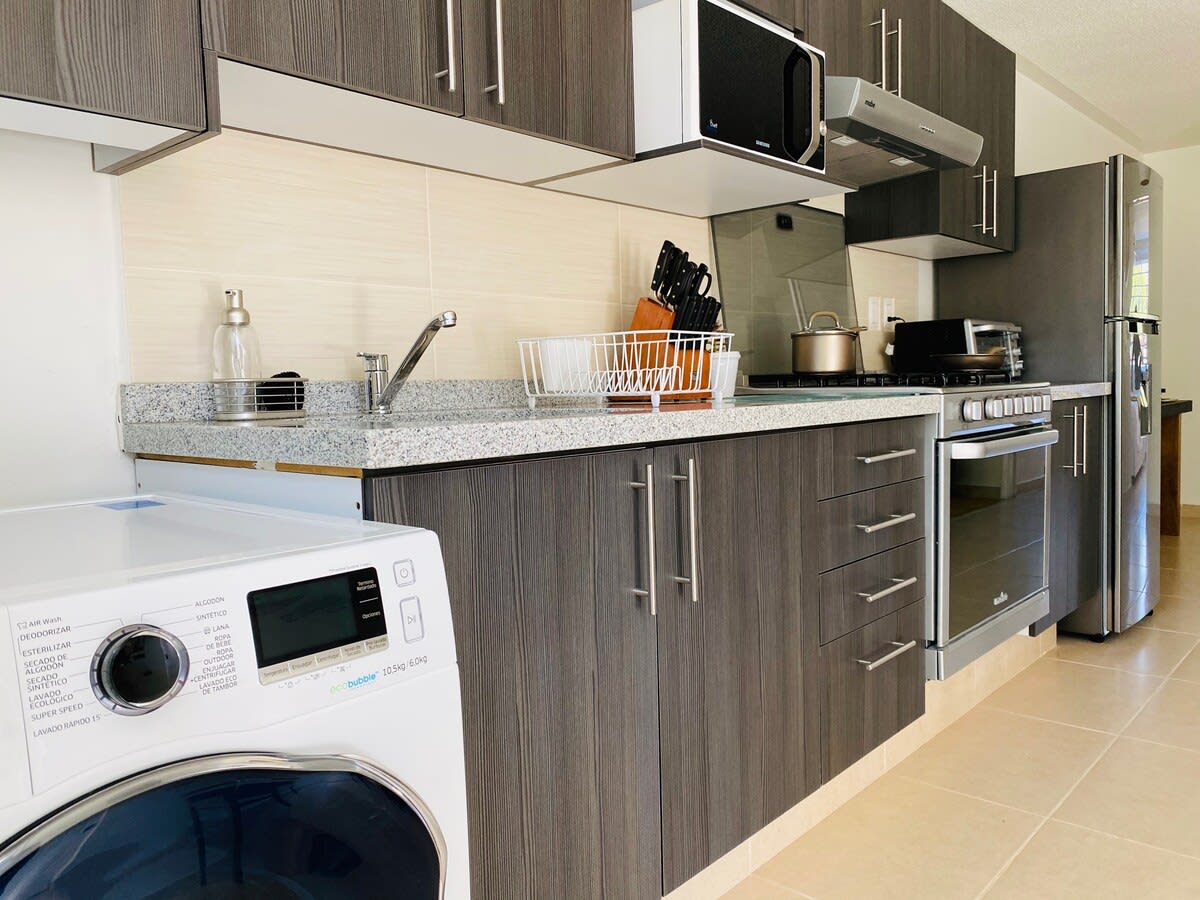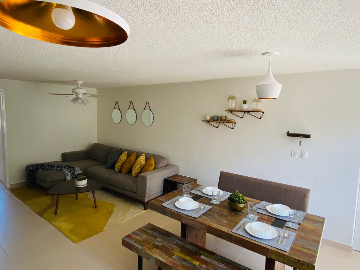 El depa está súper bonito, tal cual las fotos, limpio y ordenado, se nos hizo fácil llegar al alojamiento, Zona tranquila, el centro a 12 min, Lo único a consideración es que en tiempo de calor es qué hay muchas muchas no 1 o 2, muuuuchas cucarachas afuera del depa, adentro todo Perfecto pero al salir yo que le tengo una fobia en particular a las cucarachas no fue nada bonito ver tantas ! La cama riquísima, los insumos para hacer de desayunar todo Perfecto y limpio adentro, espacio amplio y bonito!