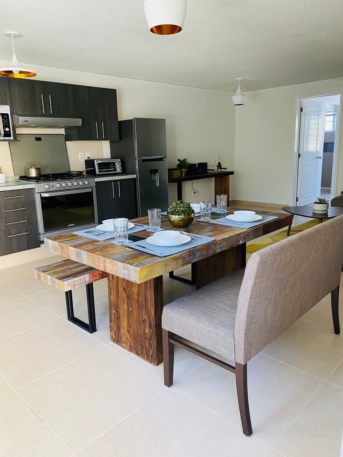 I stayed here for 2 weeks. This is my 2nd time staying in a MAS Suites rental. I love how this place was in an apartment complex with long-term residence mostly. It was extremely quiet, & you have to have a code to enter the complex which makes you feel safe. It's in a fantastic area. It's not in the heart of Centro Historico, But it's still in the center of town. It's about a 20 minute walk to the historical center, but there are so many places along the way to stop in and visit. There's a wonderful grocery store, La Comer, literally 5 minute walk & tons of restaurants. There's a great café inside La Comer that rivals any café. There's a panaderia about 8 minute walk away with endless tasty treats.