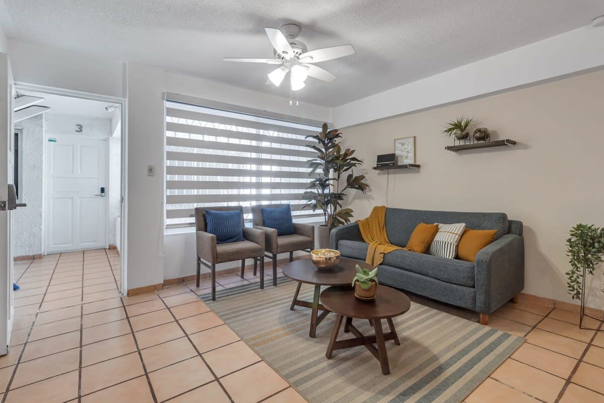 Se encuentra en una excelente zona, tiene supermercados, restaurantes, farmacias, tacos, bancos, pizzas y el centro de la ciudad realmente cerca. La atención fue bastante buena y el departamento está bastante bastante limpio y bonito.
