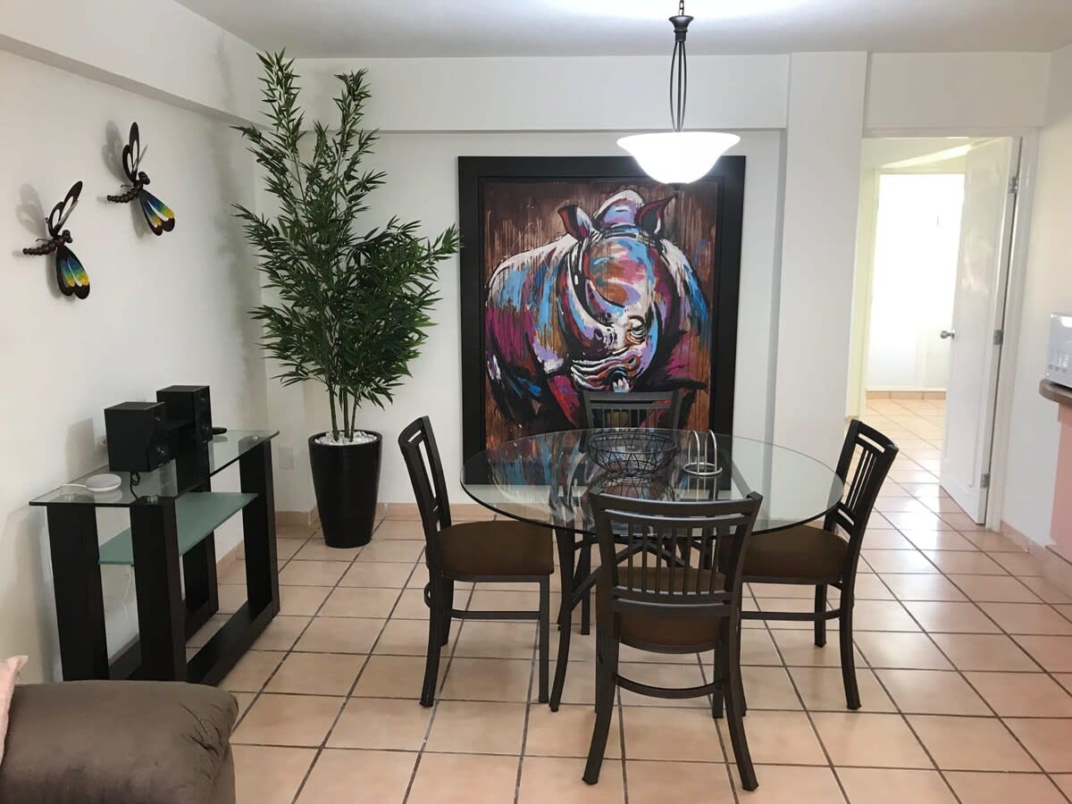 I stayed here for a week. The apartment was very comfortable, sofas and bed especially. Also the kitchen is very thoughtfully supplied with pots, pans, and utensils; even lidded containers to save leftovers in the fridge. The housekeepers are very efficient and were helpful. There are lots of shops and food options in the immediate vicinity and Centro is a short ride away.