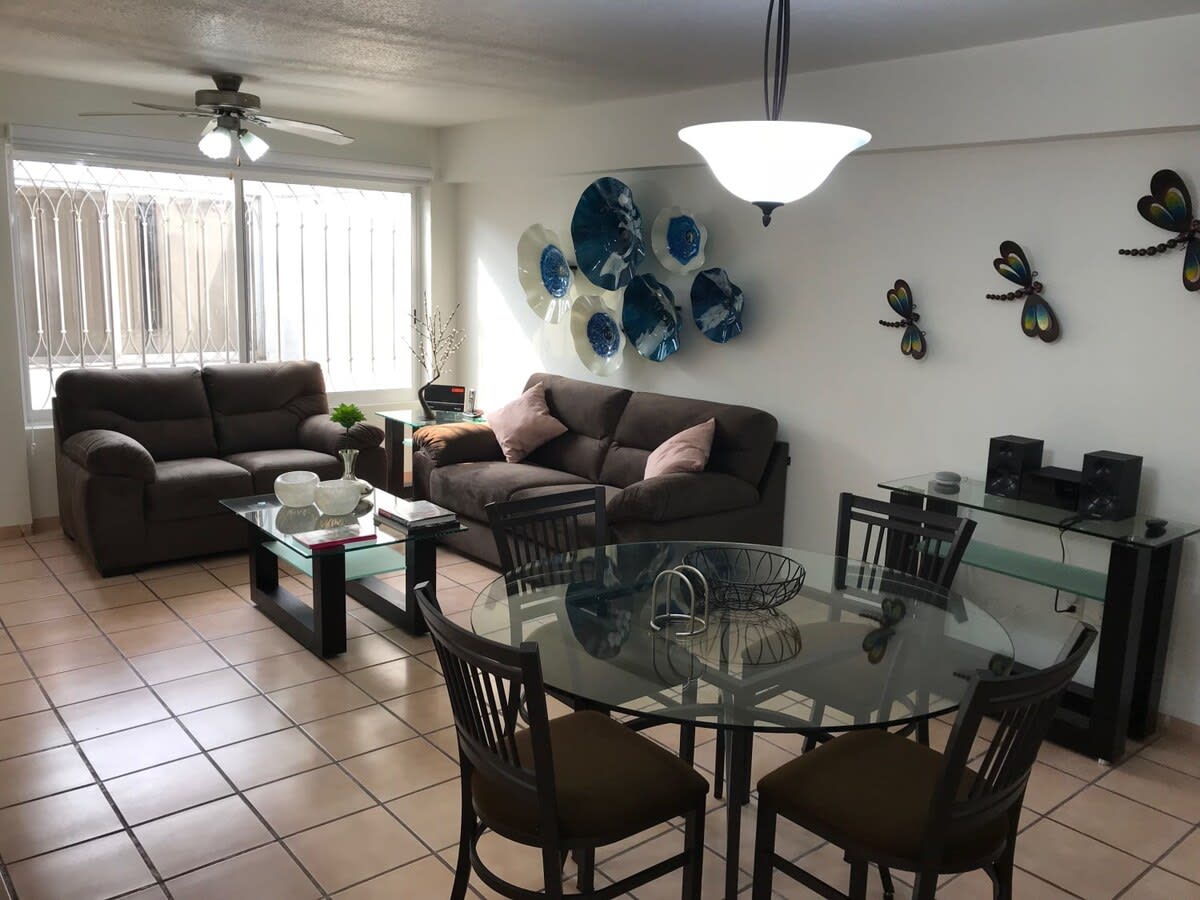 Nice neighborhood, no tourists, good breakfast, lunch eateries all around. Apartment on 3rd floor. Spacious, great TV with movies galore. Large asst of cooking utensils. Water runs hot, cold, hot just need to learn the pattern. I would definitely stay here again when in Queretero.